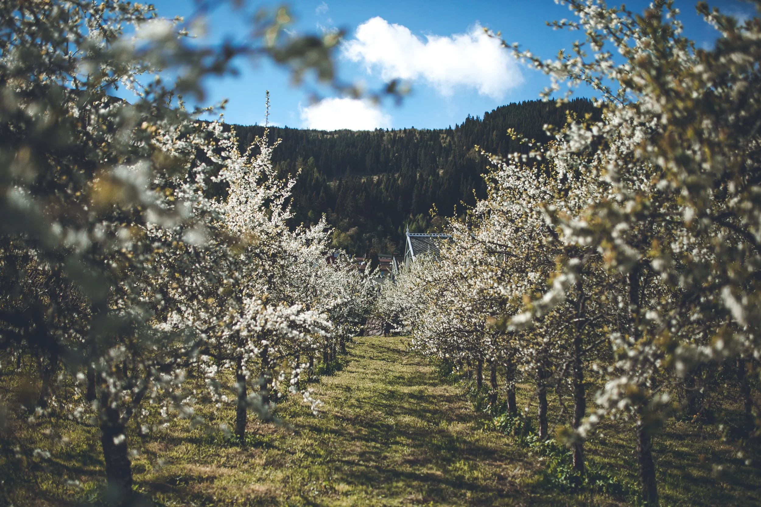 Der er det lunt nok for fruktproduksjon, sjølv om me ligg tett på dei næraste isbreane.